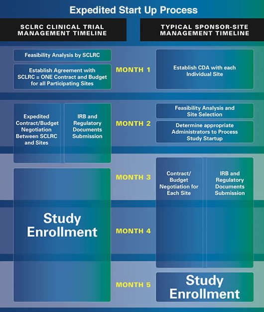 SCLRC holds master contracts with our consortium sites. The contracting process for Sponsors is streamlined by negotiating a single contract and budget with SCLRC.